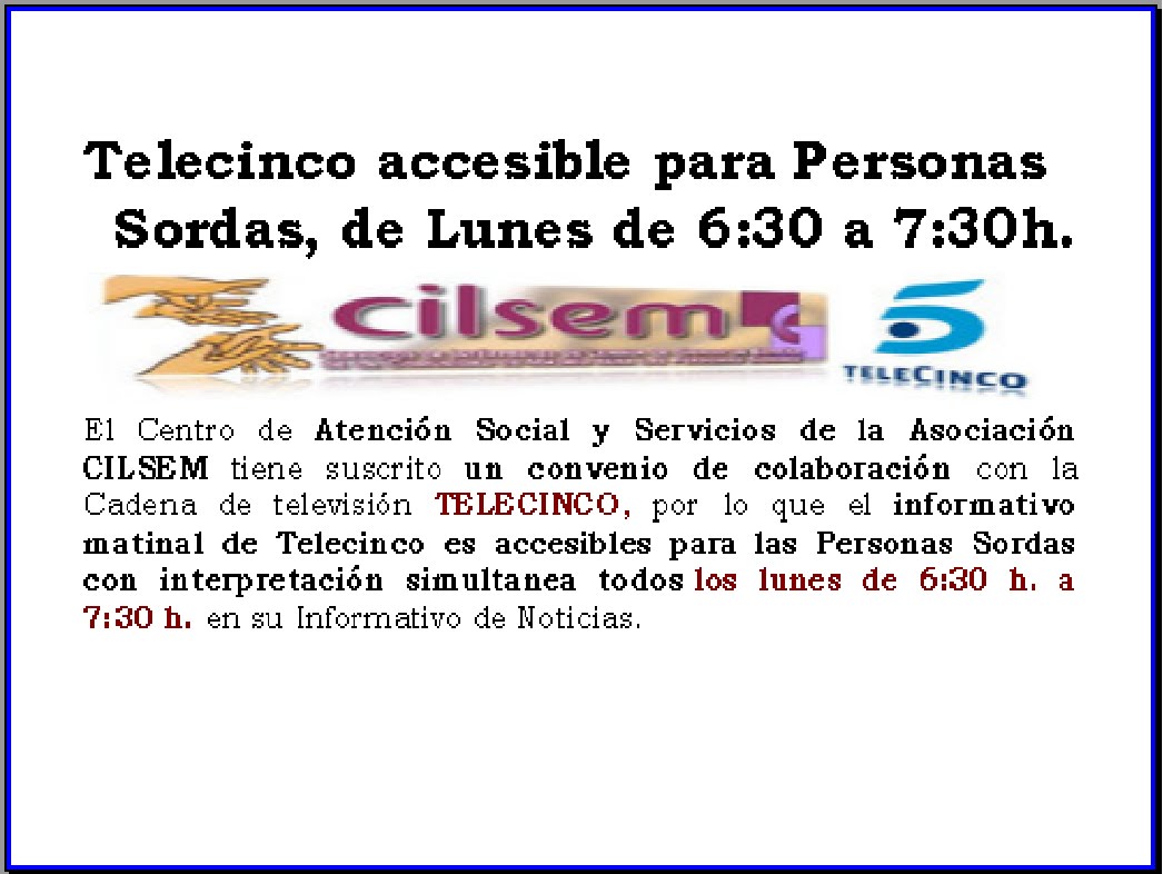 117. TELECINCO ACCESIBLE PARA PERSONAS SORDAS Publicado por A.S.R. el octubre 11, 2010 Obtener enlace Facebook X Pinterest Correo electrónico Otras aplicaciones