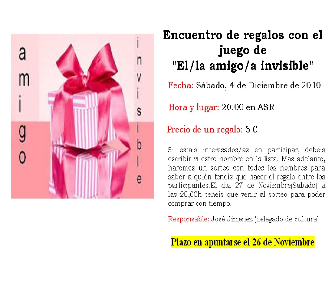 137. ENCUENTRO DE REGALOS (AMIGO/A INVISIBLE) Publicado por A.S.R. el noviembre 05, 2010 Obtener enlace Facebook X Pinterest Correo electrónico Otras aplicaciones