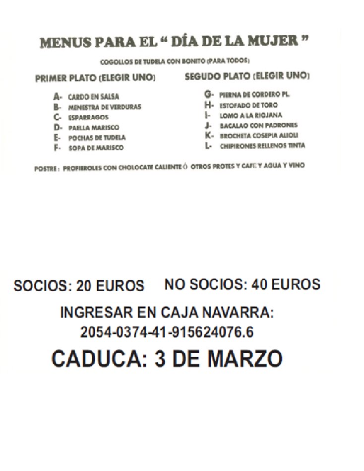 152. DÍA DE LA MUJER DE A.S.R. (12 DE MARZO) Publicado por A.S.R. el febrero 24, 2011 Obtener enlace Facebook X Pinterest Correo electrónico Otras aplicaciones CARTEL DEL DÍA DE LA MUJERMENÚ Y PRECIO