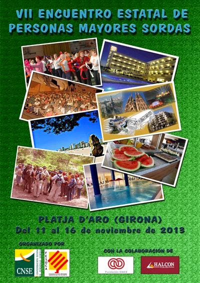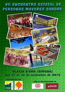VII ENCUENTRO NACIONAL DE PERSONAS SORDAS MAYORES SORDAS Publicado por A.S.R. el julio 16, 2013 Obtener enlace Facebook X Pinterest Correo electrónico Otras aplicaciones http://www.youtube.com/watch?v=TelsNYsIi-8&feature=youtu.be Fecha: 11 al 16 de noviembre de 2013 Lugar: Platja D´aro ( Girona) Plazo de inscripción: 20 de septiembre ¡¡¡¡¡¡ANIMAOS A PARTICIPAR!!!!!