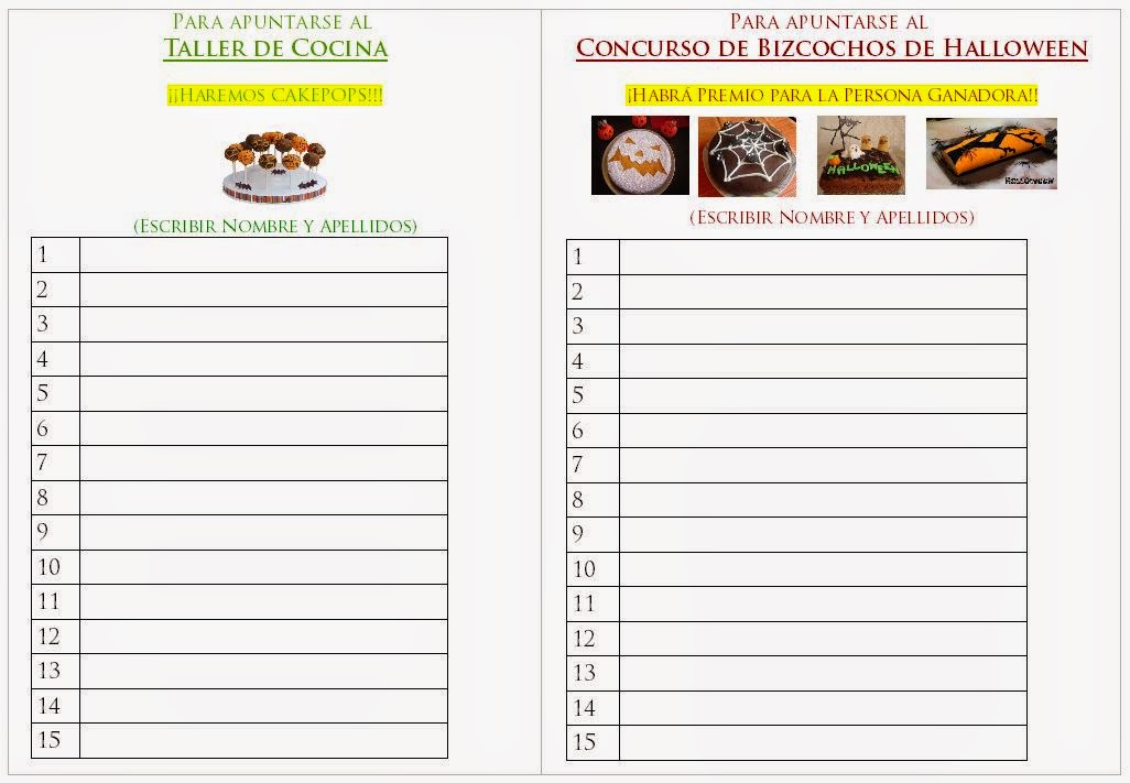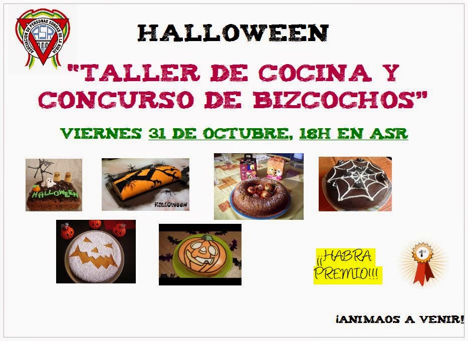Halloween “Taller de cocina y Concurso de Bizcochos” Publicado por A.S.R. el octubre 21, 2014 Obtener enlace Facebook X Pinterest Correo electrónico Otras aplicaciones