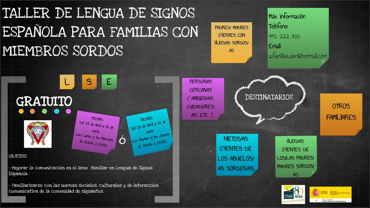 TALLER DE LENGUA DE SIGNOS PARA FAMILIAS CON MIEMBROS SORDOS Publicado por A.S.R. el marzo 15, 2017 Obtener enlace Facebook X Pinterest Correo electrónico Otras aplicaciones